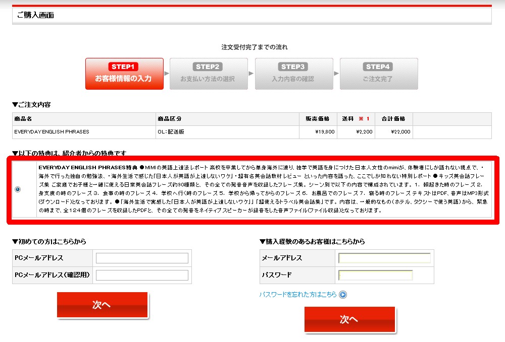 上記赤い枠がない状態でご購入されますと特典が付きませんのでご注意下さい。